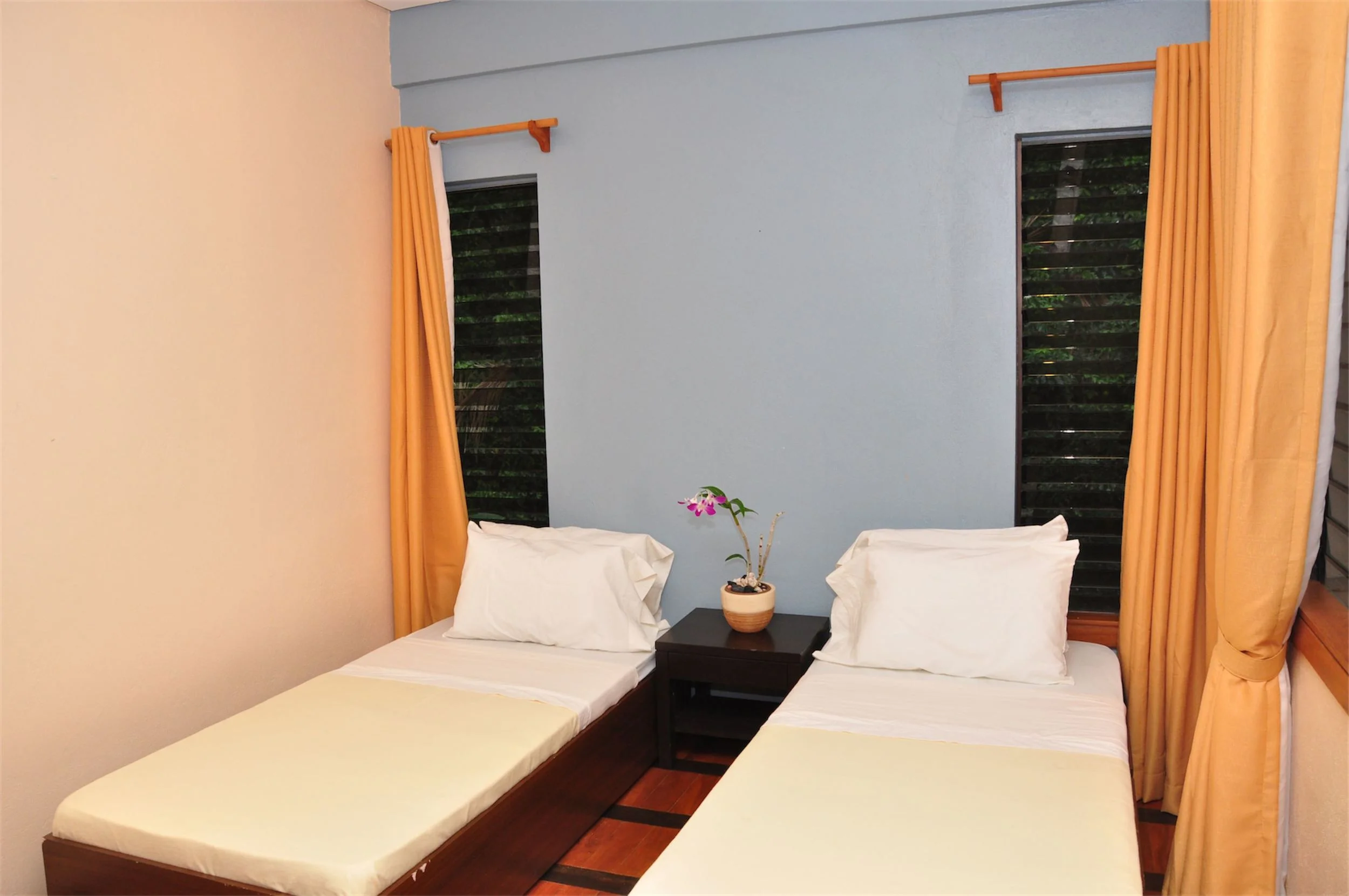 - 2 fan rooms with 2 single beds each and T&B